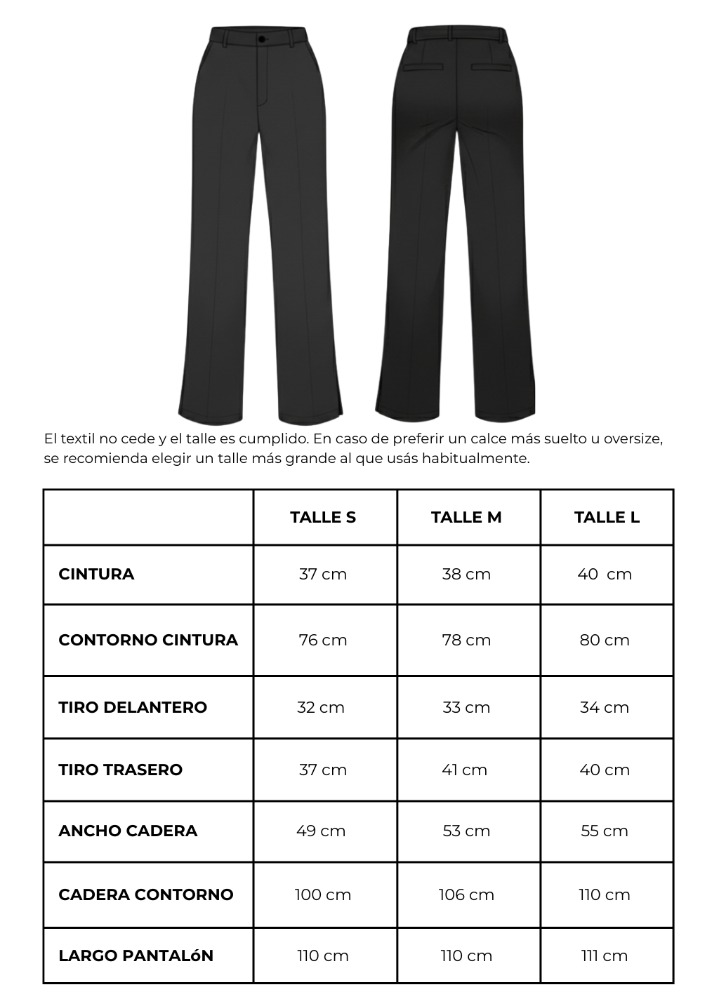 Importante: El textil no cede y el talle es cumplido. En caso de preferir un calce más suelto u oversize, se recomienda elegir un talle más grande al que usás habitualmente.