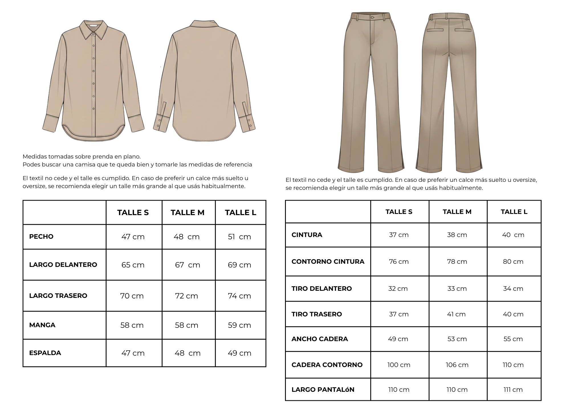 Importante: El textil no cede y el talle es cumplido. En caso de preferir un calce más suelto u oversize, se recomienda elegir un talle más grande al que usás habitualmente.